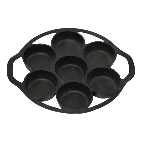 핫 세일 블랙 쉬운 빠른 7 구멍 주철 케이크 팬 핸들 라운드 바닥 튀긴 계란 팬